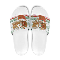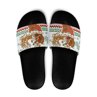 Ready to own your look? Order your pair of Iran Christmas Slide Sandals with Santa Sleigh Reindeer Map and Green Red Snowflake Pattern today and walk in confidence.