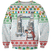 Iran Christmas Sweatshirt with Santa Taking Photos Ancient Columns and Snowflake Gift Pattern