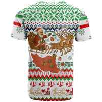 Iran Christmas T Shirt with Santa Sleigh Reindeer Map and Green Red Snowflake Pattern TS04