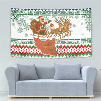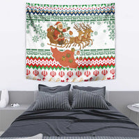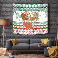 Iran Christmas Tapestry with Santa Sleigh Reindeer Map and Green Red Snowflake Pattern TS04