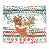 Iran Christmas Tapestry with Santa Sleigh Reindeer Map and Green Red Snowflake Pattern