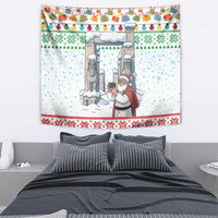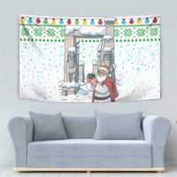 Iran Christmas Tapestry with Santa Taking Photos Ancient Columns and Snowflake Gift Pattern