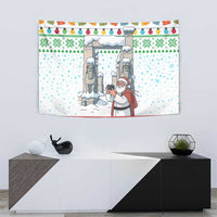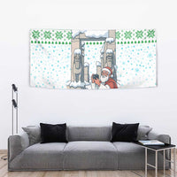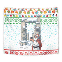 Iran Christmas Tapestry with Santa Taking Photos Ancient Columns and Snowflake Gift Pattern TS04