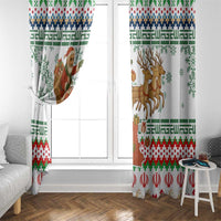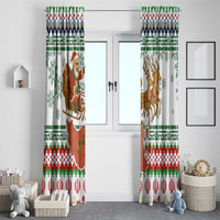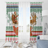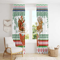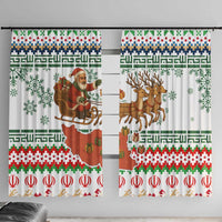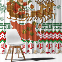 Iran Christmas Window Curtain with Santa Sleigh Reindeer Map and Green Red Snowflake Pattern