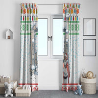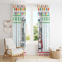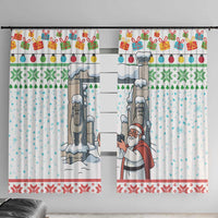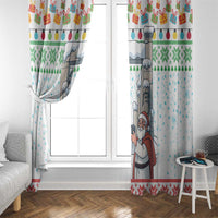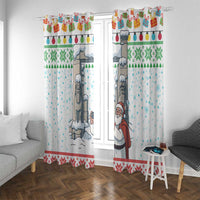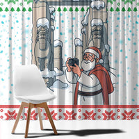 Iran Christmas Window Curtain with Santa Taking Photos Ancient Columns and Snowflake Gift Pattern