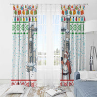 Iran Christmas Window Curtain with Santa Taking Photos Ancient Columns and Snowflake Gift Pattern TS04
