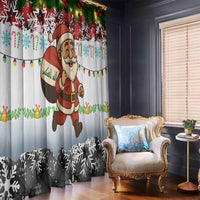 Iraq Christmas Window Curtain with Santa Carrying Gift Bag Flag Garland and Snowflake Plaid Pattern