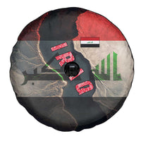 Iraq Flag Texture Spare Tire Cover with Golden Eagle Emblem and Cracked Earth Background Design