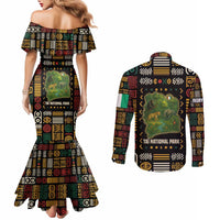 Ivory Coast Couples Matching Mermaid Dress and Long Sleeve Button Shirt with Taï National Park Wildlife Map Design