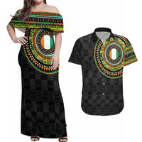 Ivory Coast Couples Matching Off Shoulder Maxi Dress and Hawaiian Shirt African Tribal Pattern