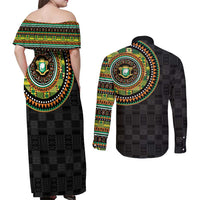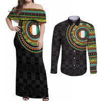 Ivory Coast Couples Matching Off Shoulder Maxi Dress and Long Sleeve Button Shirt African Tribal Pattern