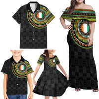 Ivory Coast Family Matching Off Shoulder Maxi Dress and Hawaiian Shirt African Tribal Pattern