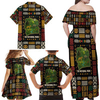 Ivory Coast Family Matching Off Shoulder Maxi Dress and Hawaiian Shirt with Taï National Park Wildlife Map Design