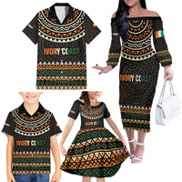 Ivory Coast Family Matching Off The Shoulder Long Sleeve Dress and Hawaiian Shirt with Ethnic Geometric Pattern and National Motto Design TS04