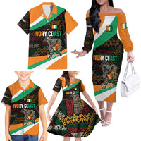 Ivory Coast Family Matching Off The Shoulder Long Sleeve Dress and Hawaiian Shirt with Soccer Elephant and Tribal Pattern Design TS04