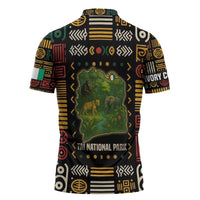 Ready to refresh your wardrobe? Grab your Ivory Coast Zipper Polo Shirt with Taï National Park Wildlife Map Design by Wonder Print Shop today and enjoy versatile style and all-day comfort.
