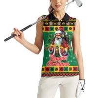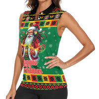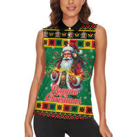 Jamaica Christmas Women Sleeveless Polo Shirt Reggae Santa with Dreadlocks Design LT19