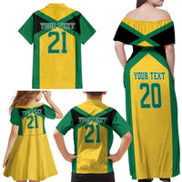 Jamaica Football Custom Family Matching Off Shoulder Maxi Dress and Hawaiian Shirt Gold Ethnic Motifs