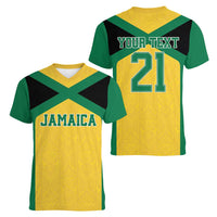 Jamaica Football Custom Women V-Neck T-Shirt Gold Ethnic Motifs