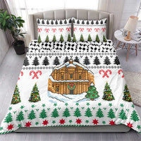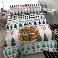 Jordan Christmas Bedding Set with Petra Monastery Snow Christmas Trees and Candy Cane Pattern