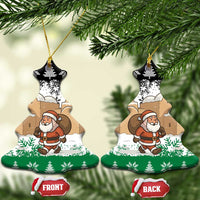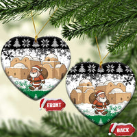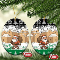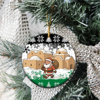 Jordan Christmas Ceramic Ornament with Santa Snow Village Green and Black Snowflake Tree Pattern