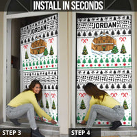 Jordan Christmas Door Cover with Petra Monastery Snow Christmas Trees and Candy Cane Pattern