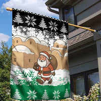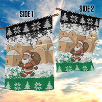 Jordan Christmas Garden Flag with Santa Snow Village Green and Black Snowflake Tree Pattern