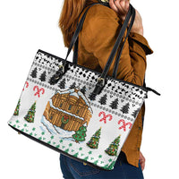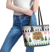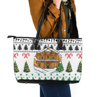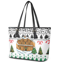 Jordan Christmas Leather Tote Bag with Petra Monastery Snow Christmas Trees and Candy Cane Pattern