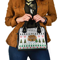 Jordan Christmas Shoulder Handbag with Petra Monastery Snow Christmas Trees and Candy Cane Pattern