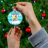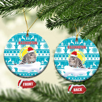 Kazakhstan Christmas Ceramic Ornament with Snow Leopard in Santa Hat Blue and Yellow Reindeer Snowflake TS04