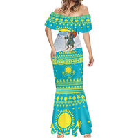Kazakhstan Christmas Mermaid Dress with Santa Skiing in Traditional Outfit Snow Mountain and Sun Pattern TS04