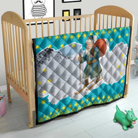 Kazakhstan Christmas Quilt with Santa Skiing in Traditional Outfit Snow Mountain and Sun Pattern