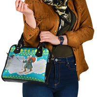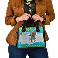 Kazakhstan Christmas Shoulder Handbag with Santa Skiing in Traditional Outfit Snow Mountain and Sun Pattern TS04