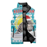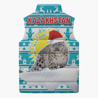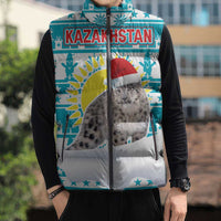 Get your Kazakhstan Christmas Sleeveless Puffer Jacket with Snow Leopard in Santa Hat Blue and Yellow Reindeer Snowflake by Wonder Print Shop today and experience warmth, style, and versatility in one perfect piece.