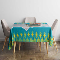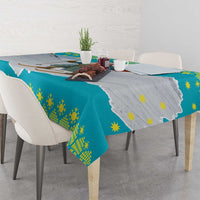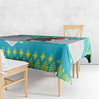 Kazakhstan Christmas Tablecloth with Santa Skiing in Traditional Outfit Snow Mountain and Sun Pattern TS04
