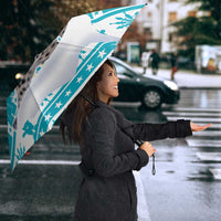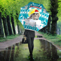 Kazakhstan Christmas Umbrella with Snow Leopard in Santa Hat Blue and Yellow Reindeer Snowflake TS04