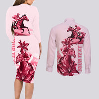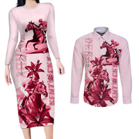 Kentucky Couples Matching Long Sleeve Bodycon Dress and Long Sleeve Button Shirt Horse Racing Lily Stargazer Pink Version