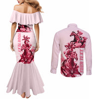Kentucky Couples Matching Mermaid Dress and Long Sleeve Button Shirt Horse Racing Lily Stargazer Pink Version LT01