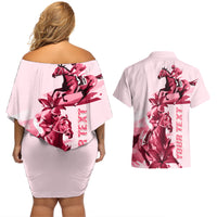 Kentucky Couples Matching Off Shoulder Short Dress and Hawaiian Shirt Horse Racing Lily Stargazer Pink Version
