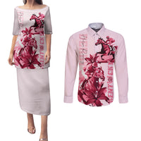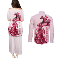 Kentucky Couples Matching Puletasi and Long Sleeve Button Shirt Horse Racing Lily Stargazer Pink Version