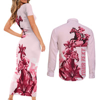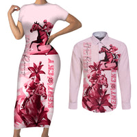 Kentucky Couples Matching Short Sleeve Bodycon Dress and Long Sleeve Button Shirt Horse Racing Lily Stargazer Pink Version