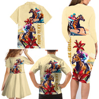 Kentucky Family Matching Long Sleeve Bodycon Dress and Hawaiian Shirt Horse Racing Lily Stargazer LT01