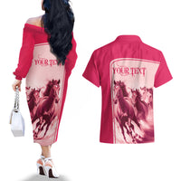 Kentucky Horse Racing Personalized Couples Matching Off The Shoulder Long Sleeve Dress and Hawaiian Shirt Pink Out