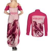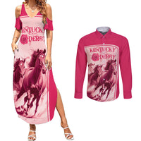 Kentucky Horse Racing Personalized Couples Matching Summer Maxi Dress and Long Sleeve Button Shirt Pink Out