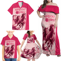 Kentucky Horse Racing Personalized Family Matching Off Shoulder Maxi Dress and Hawaiian Shirt Pink Out