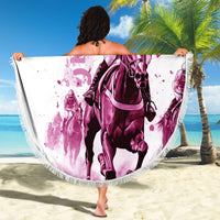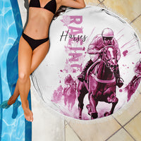 Kentucky Horses Racing Beach Blanket Jockey Drawing Style Pink Out Color