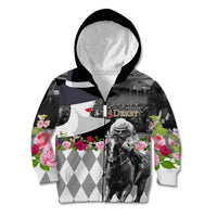 Kentucky Racing Horses Derby Hat Lady Kid Hoodie Churchill Downs and Roses Grayscale LT03