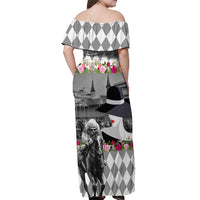 Kentucky Racing Horses Derby Hat Lady Off Shoulder Maxi Dress Churchill Downs and Roses Grayscale LT03