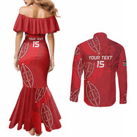Kenya Rugby Custom Couples Matching Mermaid Dress and Long Sleeve Button Shirt Go Champions Simbas - Red Color