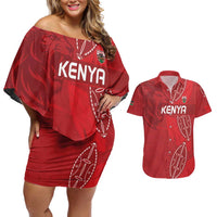 Kenya Rugby Custom Couples Matching Off Shoulder Short Dress and Hawaiian Shirt Go Champions Simbas - Red Color LT15